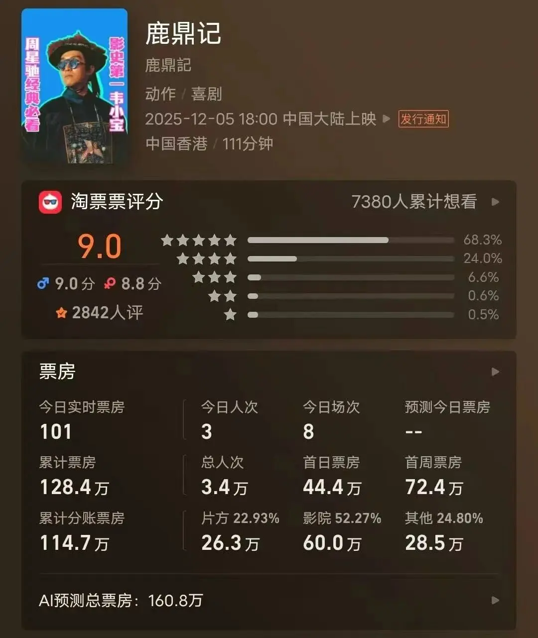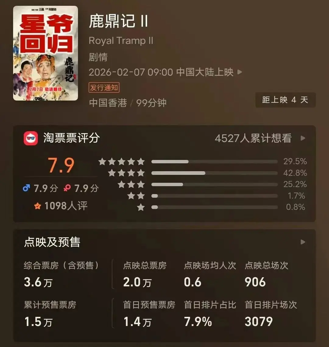 《鹿鼎记》中无厘头的笑点、夸张的扮演、特定的时期隐喻,与深受短视频节拍、网生内容言语素养的年青一代,存在自然的审好意思代沟。他们更餍足为《大肆动物城2》这么的寰球新IP,或是极具视听冲击的视效大片买单。